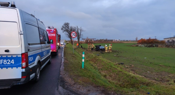 Do wypadku doszło w nocy z wtorku na środę (14/15 listopada) na 364. kilometrze DK 92 w miejscowości Groszki (powiat kutnowski). Jak podają służby w komunikacie, samochód osobowy po uderzeniu w drzewo zatrzymał się dopiero na polu. W zdarzeniu śmierć poniosła 36-letnie kobieta, zaś 32-letni mężczyzna został ranny.
