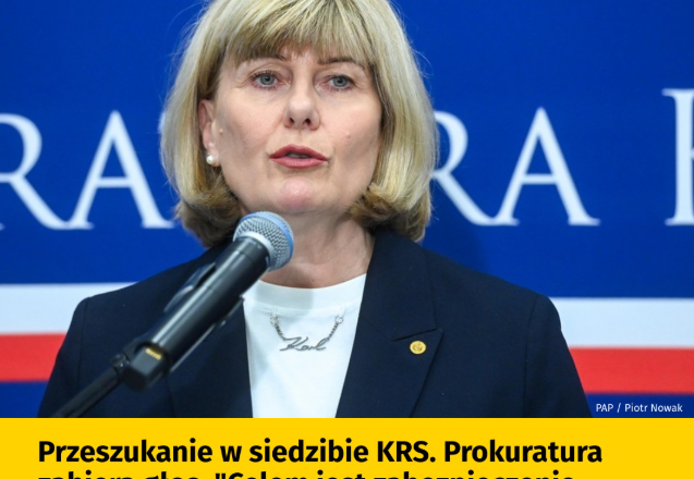— W tej chwili czynności są realizowane przez prokuratorów przy udziale funkcjonariuszy policji. Są one w toku, więc będziemy informowali o ich przebiegu po ich zakończeniu. Celem tych czynności jest odebranie i zabezpieczenie dowodów w prowadzonym postępowaniu — podkreśliła następnie na konferencji prasowej rzeczniczka Prokuratury Krajowej prok. Anna Adamiak.