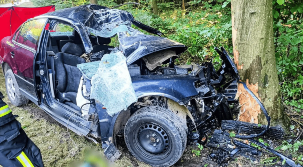 Samochód roztrzaskał się na drzewie, na miejscu niezwłocznie zjawiły się służby. Aby uwolnić kierowcę, strażacy musieli użyć specjalistycznego sprzętu. Niestety, życia poszkodowanego 32-latka nie udało się uratować.