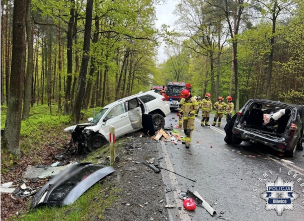 Zdjęcia udostępnione przez śląską policję pokazują siłę, jaka w wypadku oddziaływała na oba samochody. Pojazdy są całkowicie zniszczone, a ich maski zostały zmiażdżone. Magdalena Żubertowska z zespołu prasowego śląskiej policji w rozmowie z TVN24 poinformowała, że początkowo trudno było ustalić markę samochodu, którym podróżowały ofiary wypadku, gdyż auto było “zmasakrowane”.