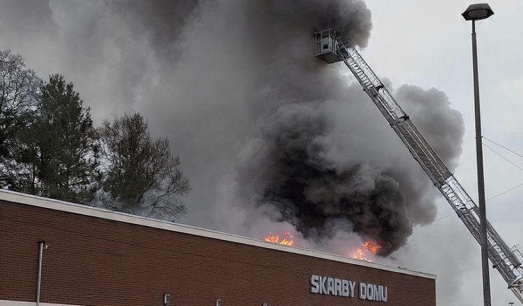 Pożar hali handlowej w Czersku. Służby w akcji od rana